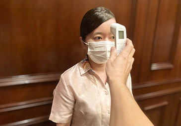 滞在中、定期的な検温をお願いいたします(一階に非接触タブレット型体温計を設置しております)