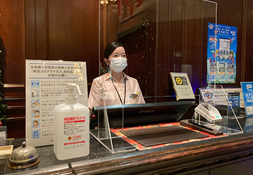 フロントには飛沫感染防止用アクリルボードを設置しております。