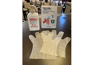 客室の貸し出し品は回収時にアルコール消毒を行います。