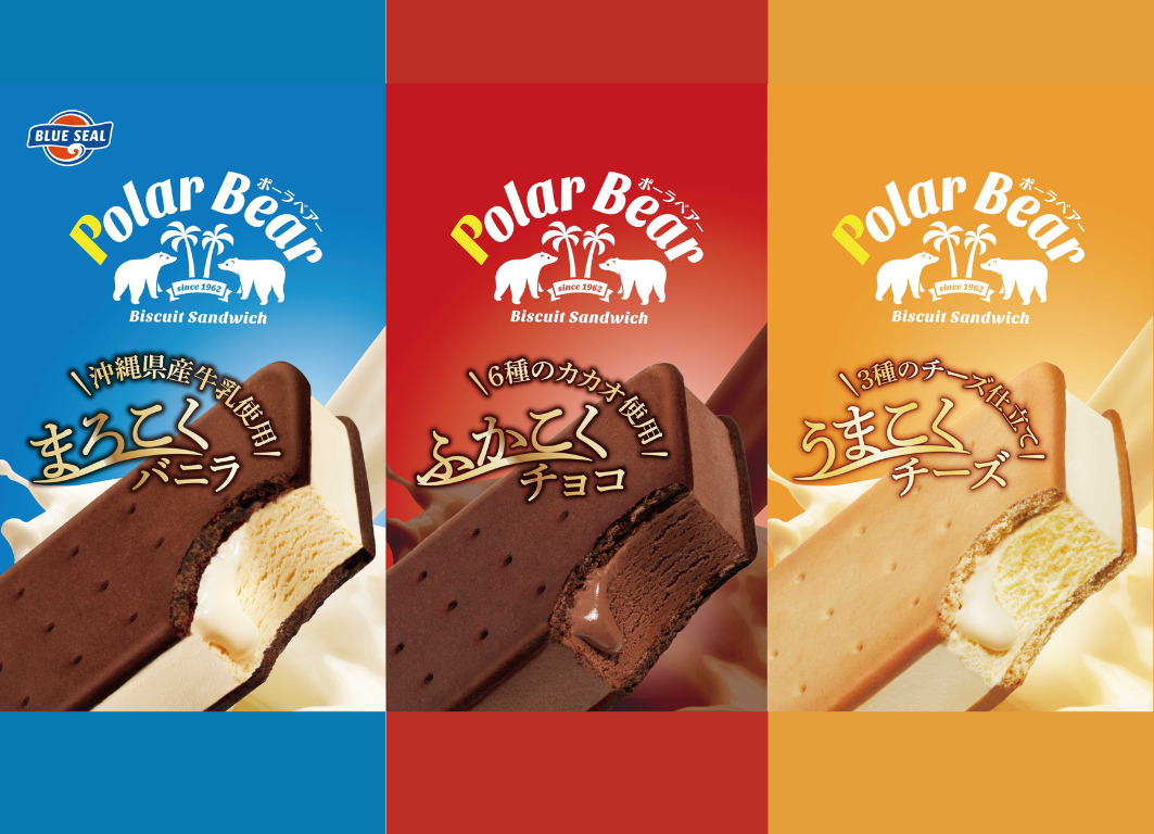 🍧定番のバニラに2022年からチョコとチーズが加わったビスケットサンドアイスのポーラベアー