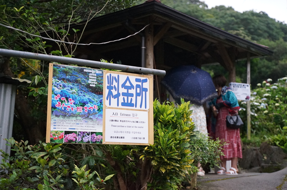 県道沿いに「よへなあじさい園」の看板が目立つように立ってますので、すぐにわかると思
