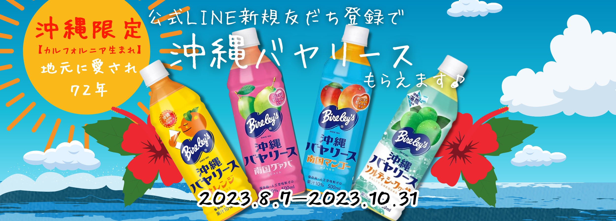 1951年の日本販売開始から変わらない味で沖縄県民に愛されて72年の沖縄バヤリースをキャンペーン期間中、LINE新規友だち登録をしてご宿泊いただいたお客様へプレゼント‼