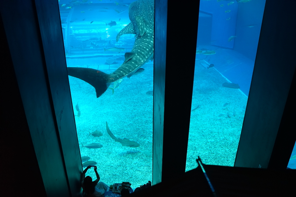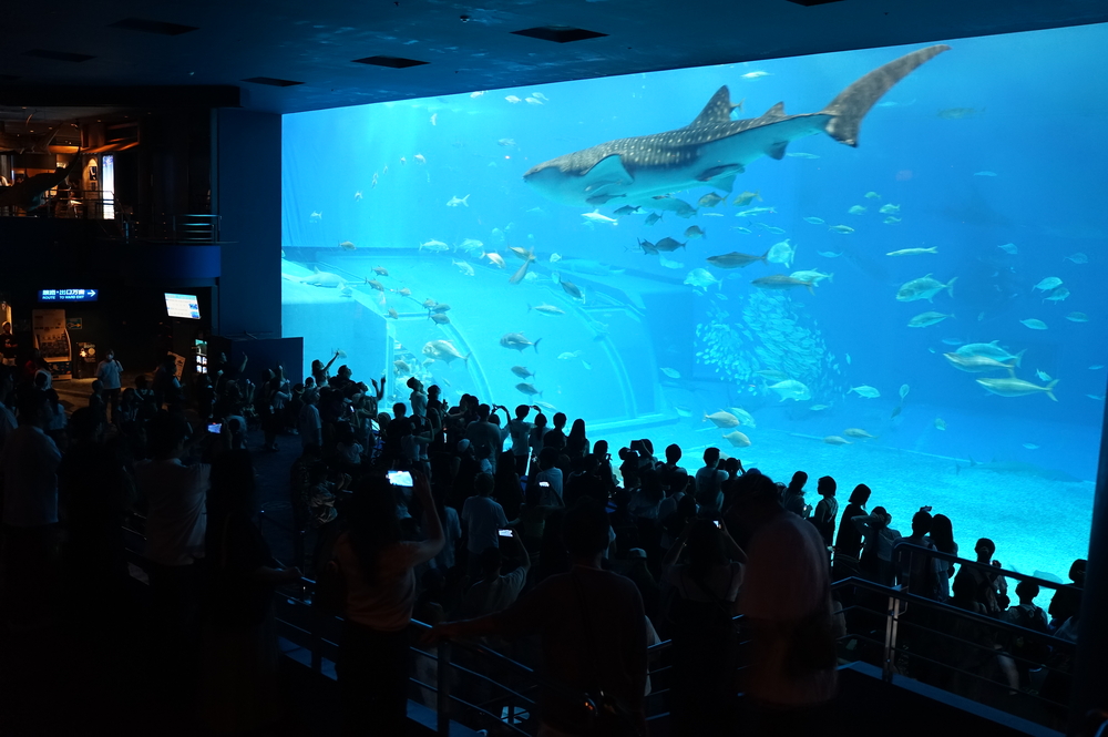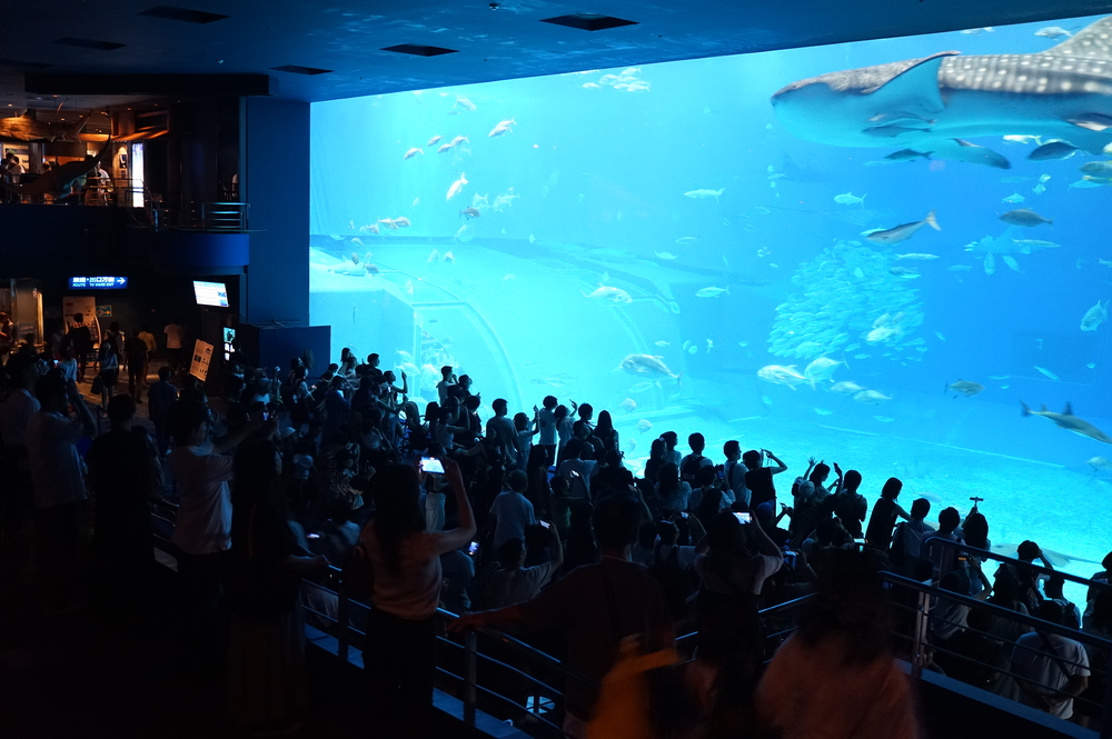 美ら海水族館の水槽は、開館当初は世界一でギネス記録にもなっていましたが、そのすぐあとにドバ