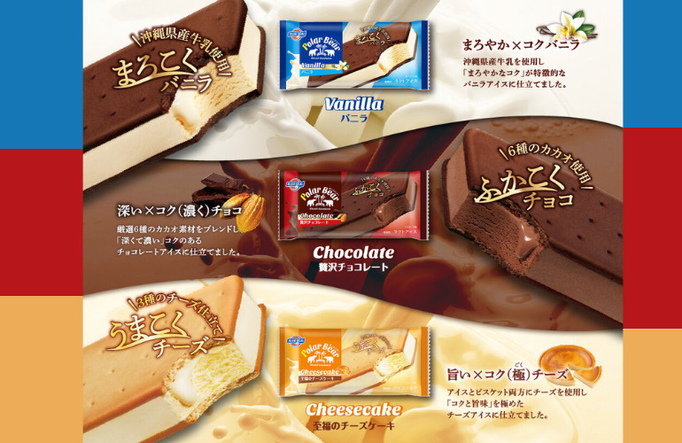 🍧定番のバニラに2022年からチョコとチーズが加わったビスケットサンドアイスのポーラベアー